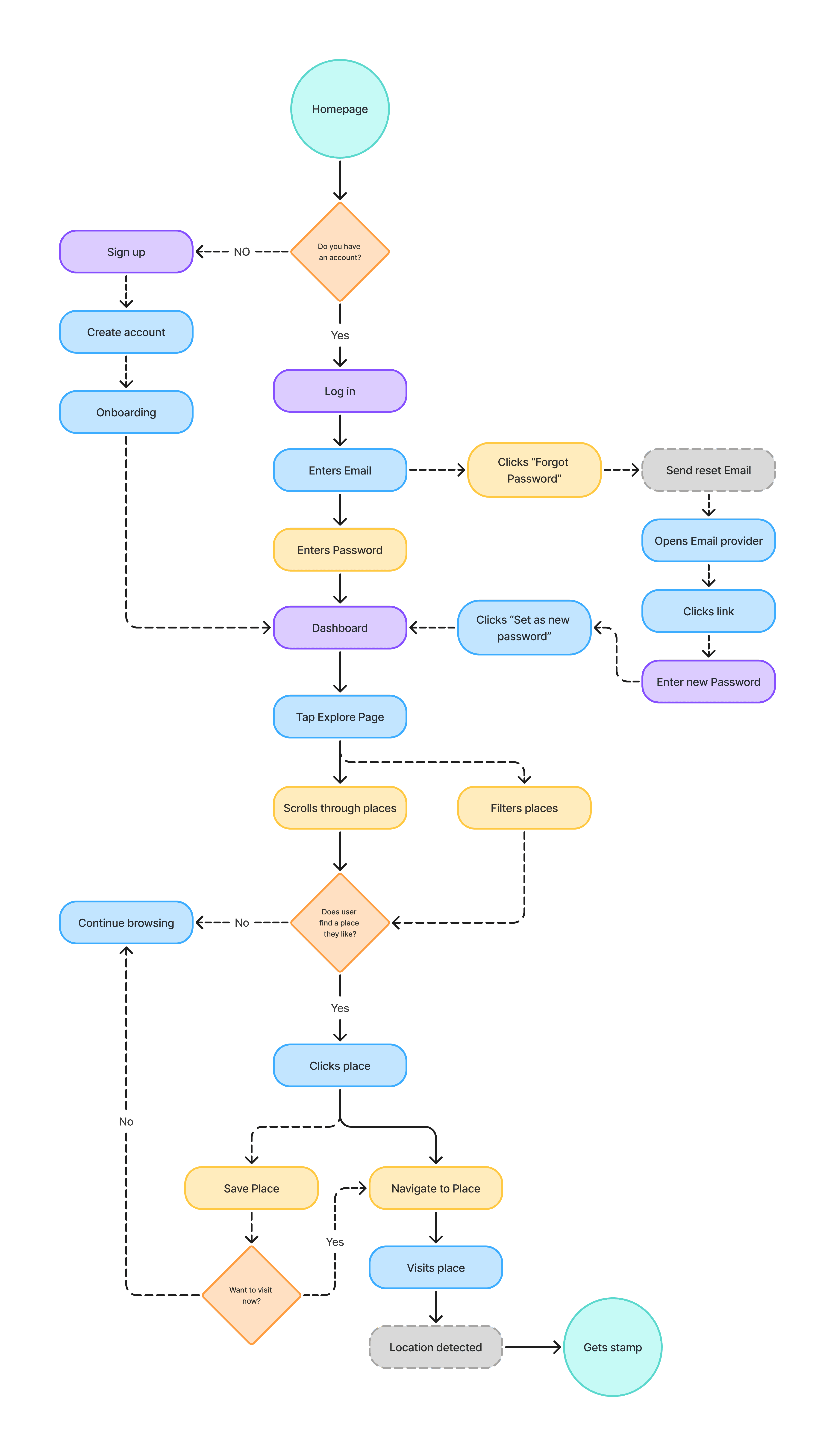 I began by sketching the core flows I planned to test: