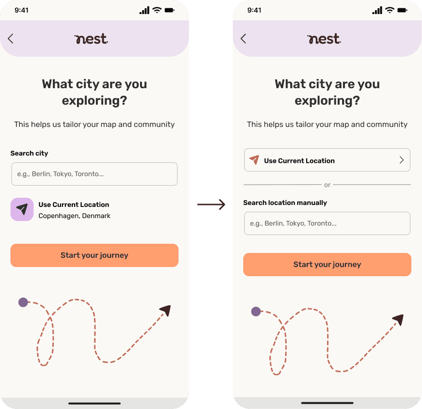 Nest creates a more intentional way for newcomers to explore a new city by supporting emotional integration, not just logistical transition.